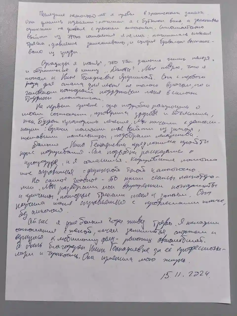 Мы понимаем, что зависимость от бутирата — это не просто медицинская проблема, но и социальная. Врачи нашей клиники работают не только с физическими проявлениями зависимости, но и с психологическими аспектами, чтобы помочь пациенту справиться с внутренними конфликтами и предотвратить рецидивы. Мы готовы предложить психологическую помощь, а также поддержку в процессе восстановления. Наша задача — не только избавиться от зависимости, но и помочь пациенту вернуть веру в себя и в свои силы. Мы уверены, что каждый пациент может справиться с этой проблемой, если обратиться за помощью вовремя.